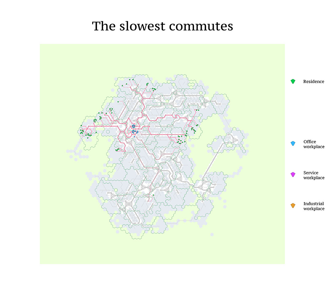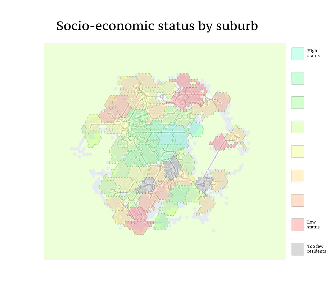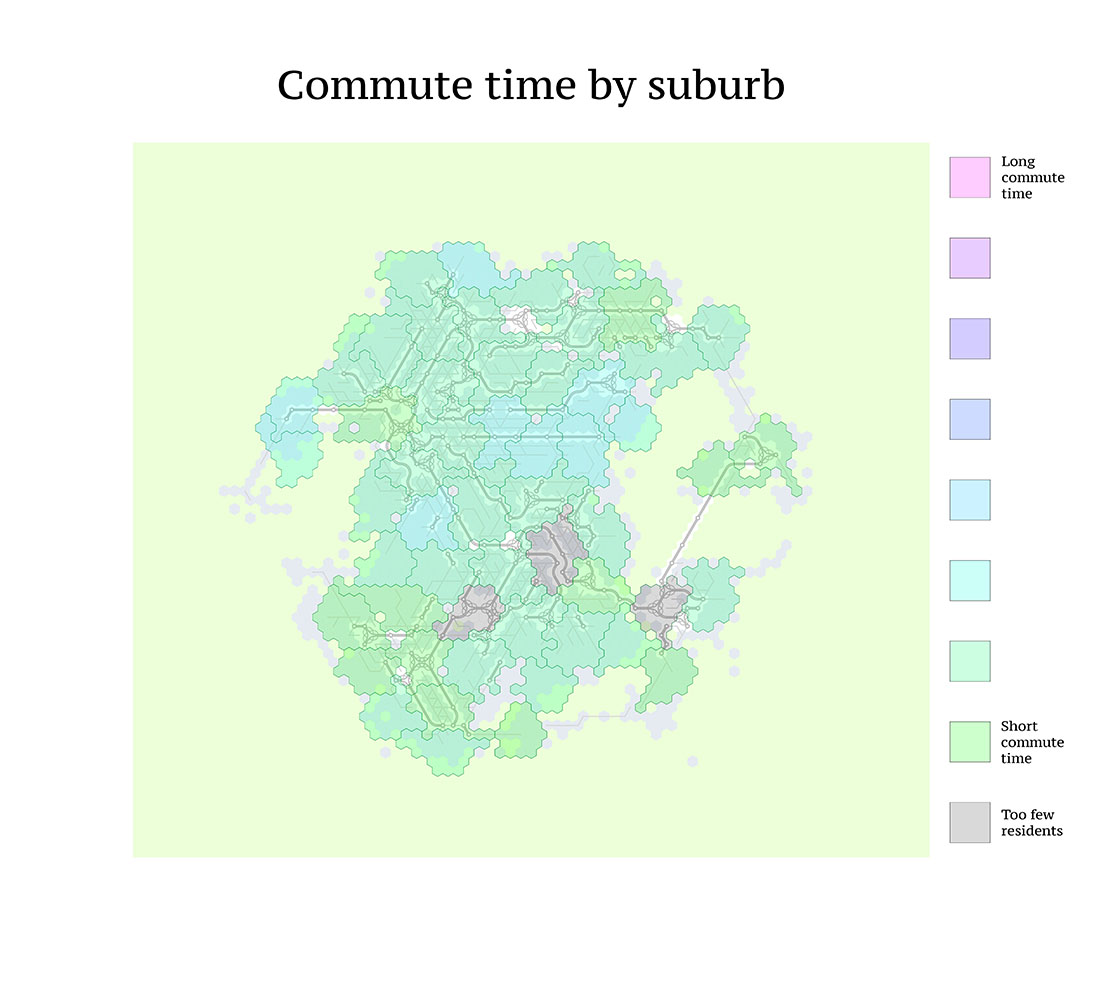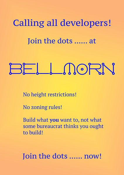 In Bellmorn someone looking to set up a business chooses the best location they can afford; an employee looking for somewhere to live chooses the best place they can afford, taking into account commuting time. Developers are not bound by planning restrictions or height limits. Their only constraint is profit: they will build whatever achieves the maximum return on their investment.