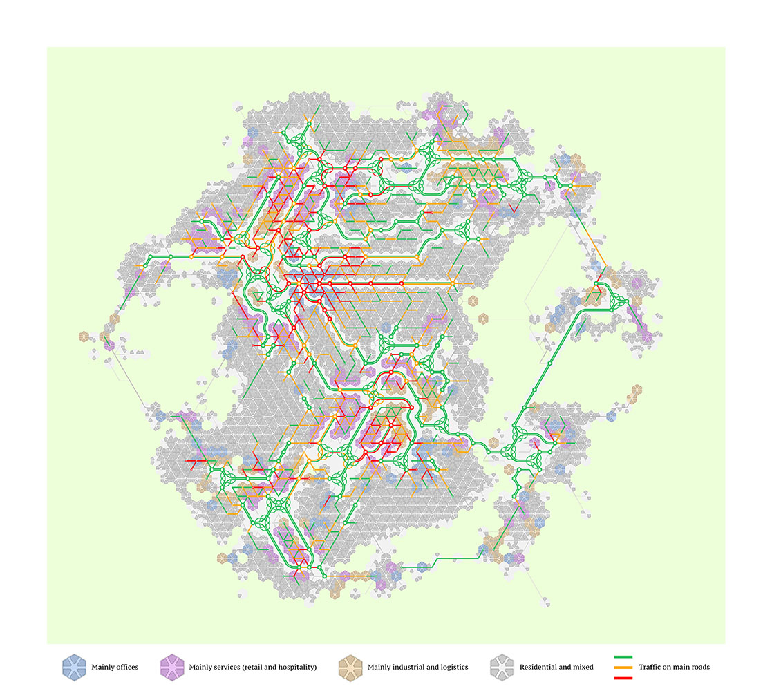 The installation is an experiment to see how such a framework would play out. It focuses on traffic, and in particular the morning commute to work. The simulation is carried out by a computer program written by the artist.