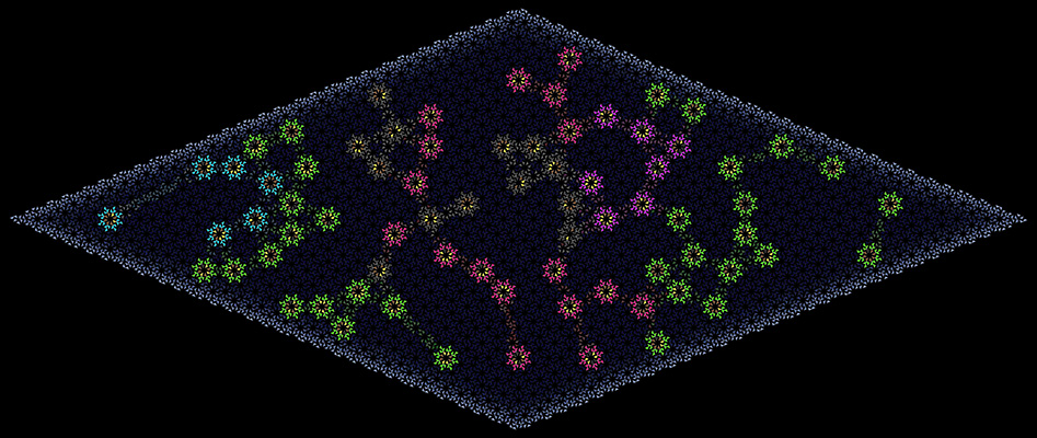 For each of the 75 individuals represented in the work I have provided an extremely short and "telegraphic" biographical note. Each individual is also represented by a coloured "rosette" in the large print; the rosette has encoded in it the Morse code for the initials of the individual. There is also a key to Morse code, so the rosette can be connected with the biography of the person it represents.