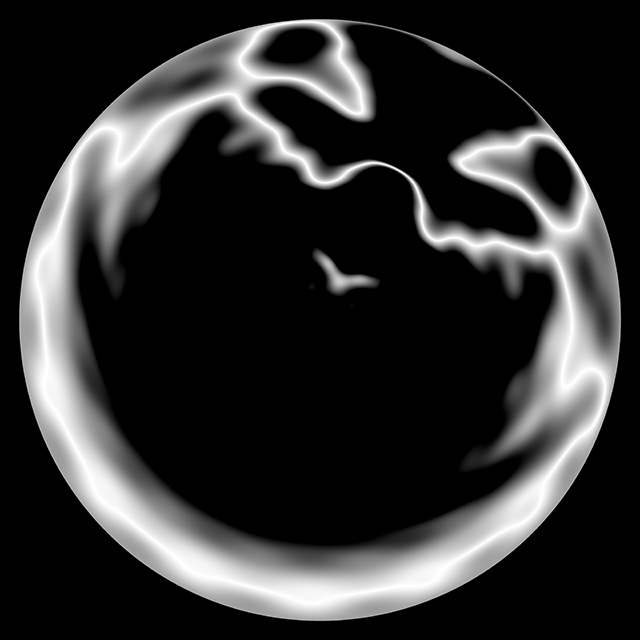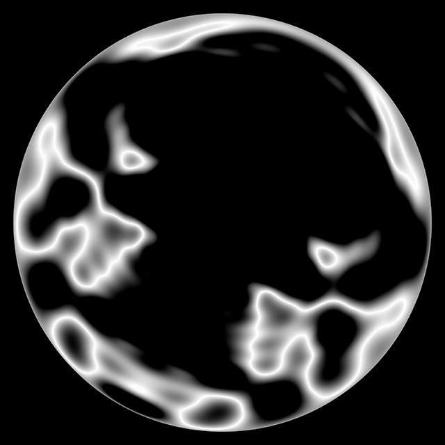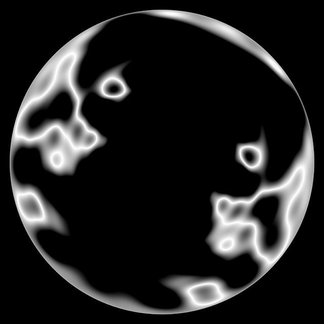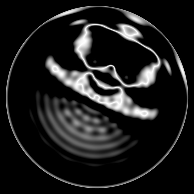 Part of the Cloud Drum grouping of prints. The Drum Mask prints form a sequence, showing successive stages in the response of a virtual drum to a single strike of a virtual mallet.