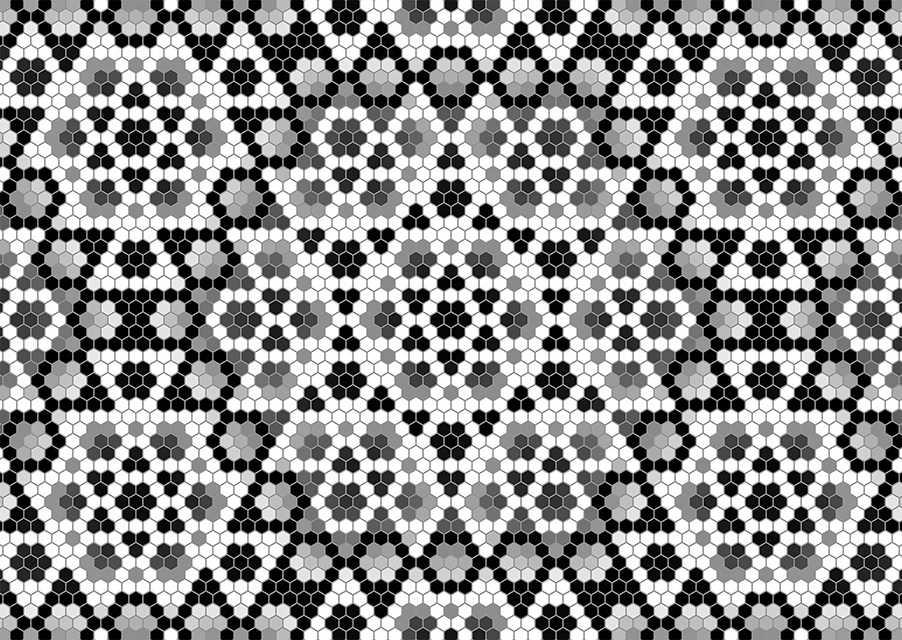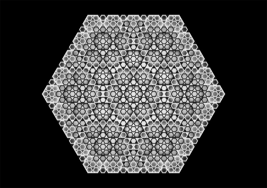 A note on the multi-level hexagonal grid used in the Hexa: Luminous prints.