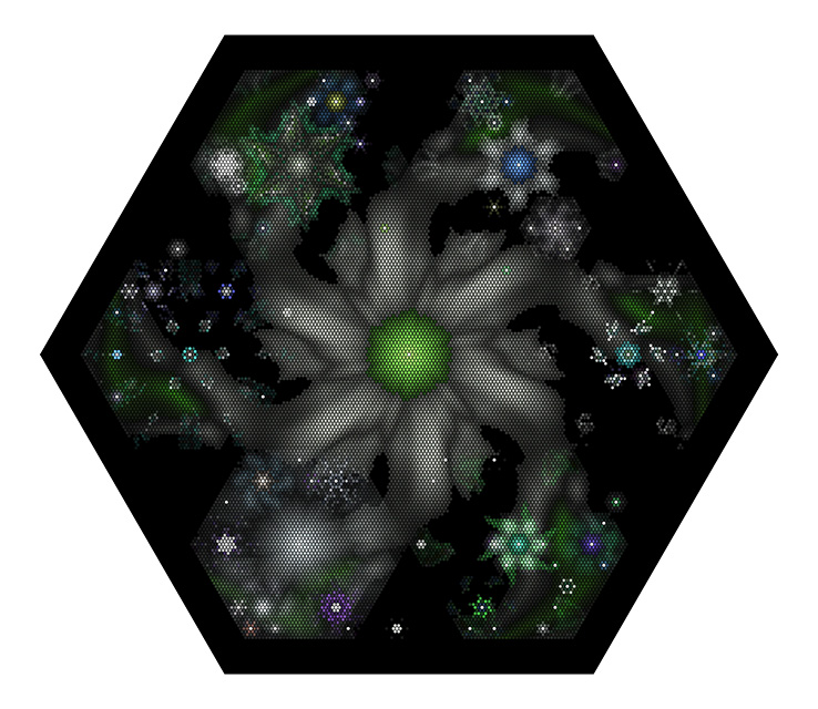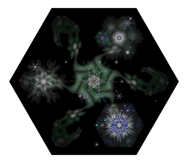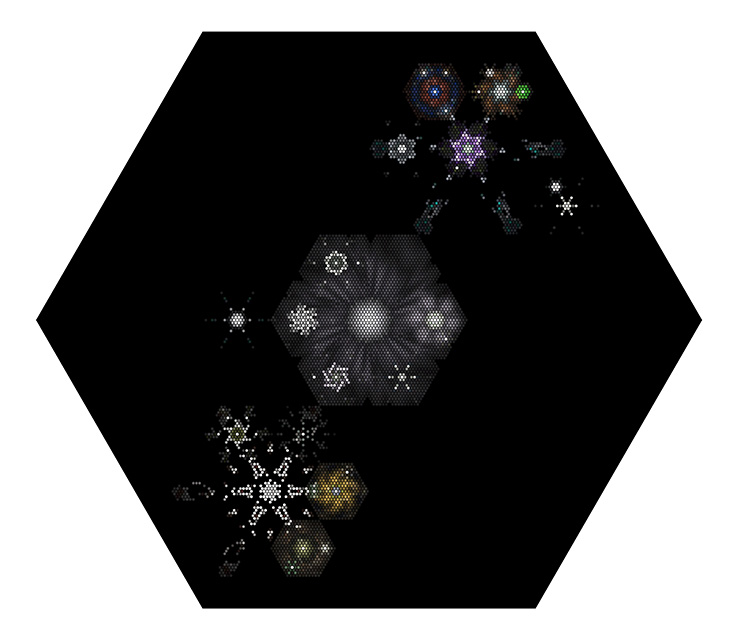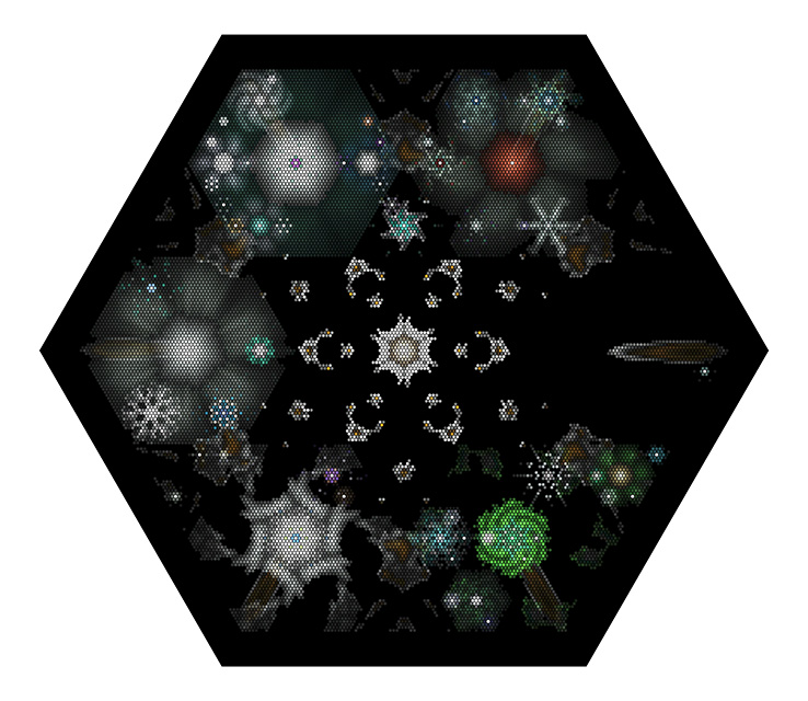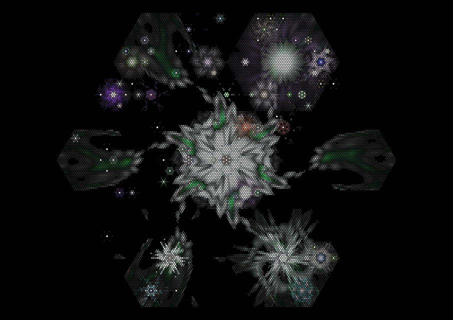 Images of a small central portion of the world of the Nanocosm, taken from the world as it evolved.